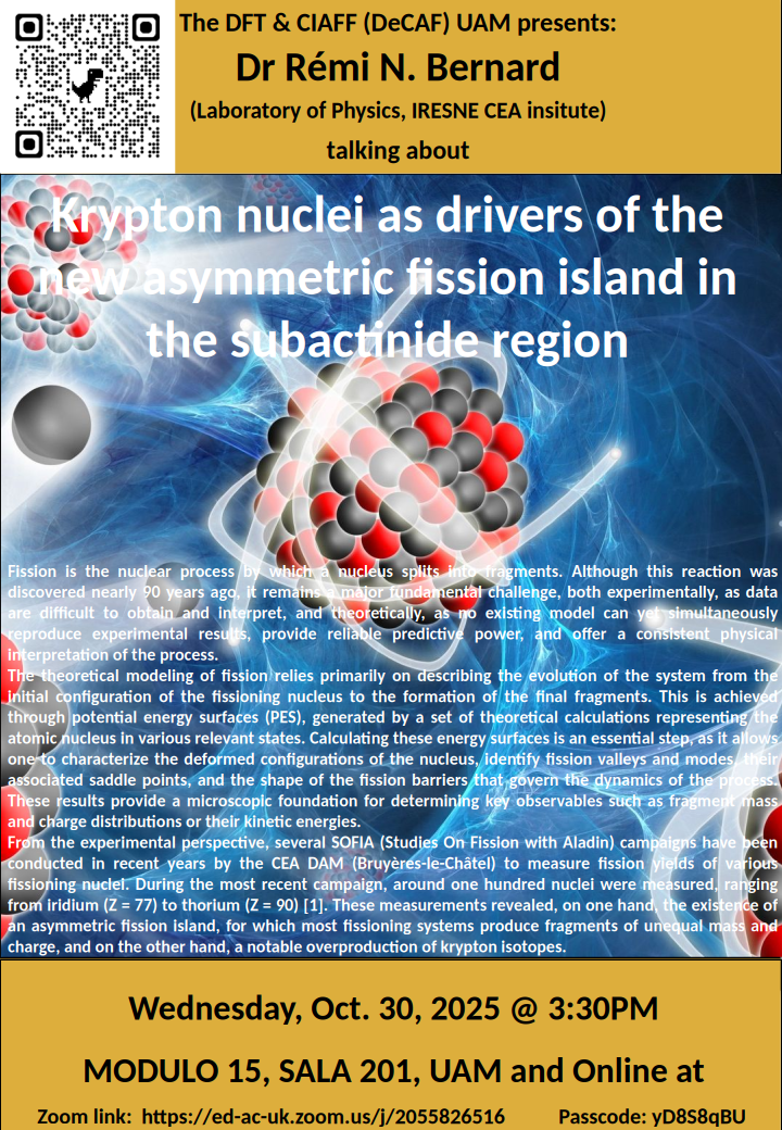 Abstract: Fission is the nuclear process by which a nucleus splits into fragments. Although this reaction was discovered nearly 90 years ago, it remains a major fundamental challenge, both experimentally, as data are dif…